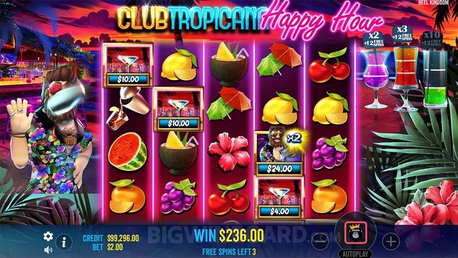Beyond the standard 10¢ to $200 per spin range, Club Tropicana Happy Hour offers an ante bet that increases your stake by 50%—perfect for players who want a higher hit rate on free spins. If you’re playing via okebet, the interface makes toggling this ante bet seamless, letting you choose whether to stick with the classic wager or supercharge your session.
