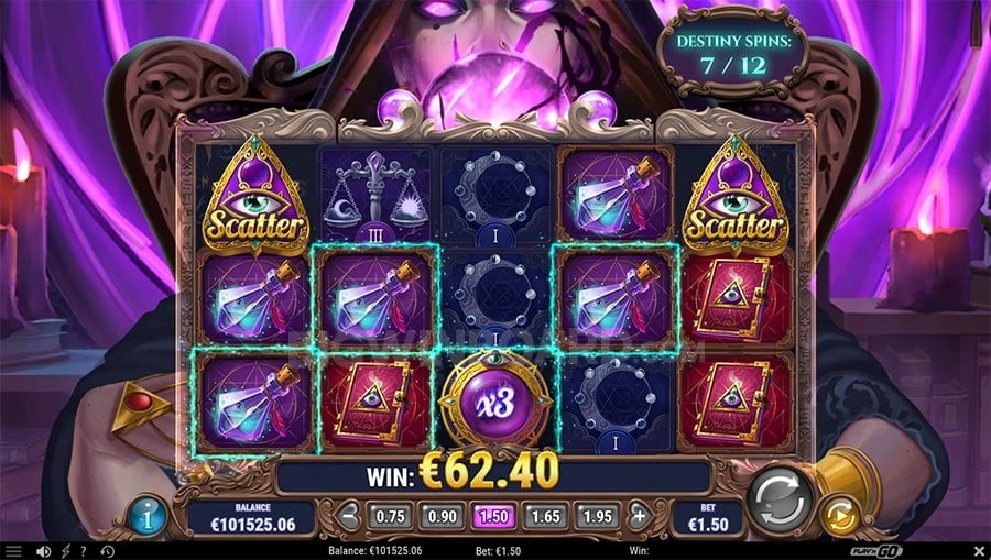 Landing three scatters awards 12 Destiny Spins, and a further three scatters adds six more—up to a maximum of 80 free spins. In this feature, higher wild multipliers and more frequent payouts create a climactic finale to chase.